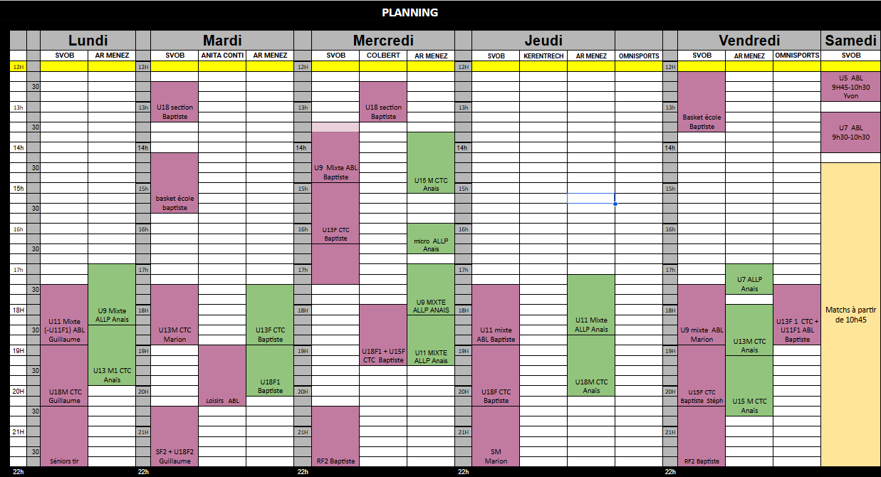 Planning d'entrainement